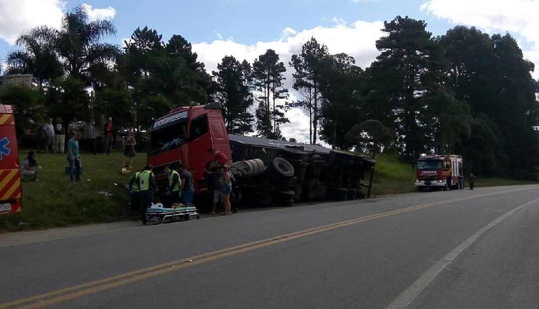 Carreta com placas de Lacerdópolis tomba e homem é ejetado na BR-280