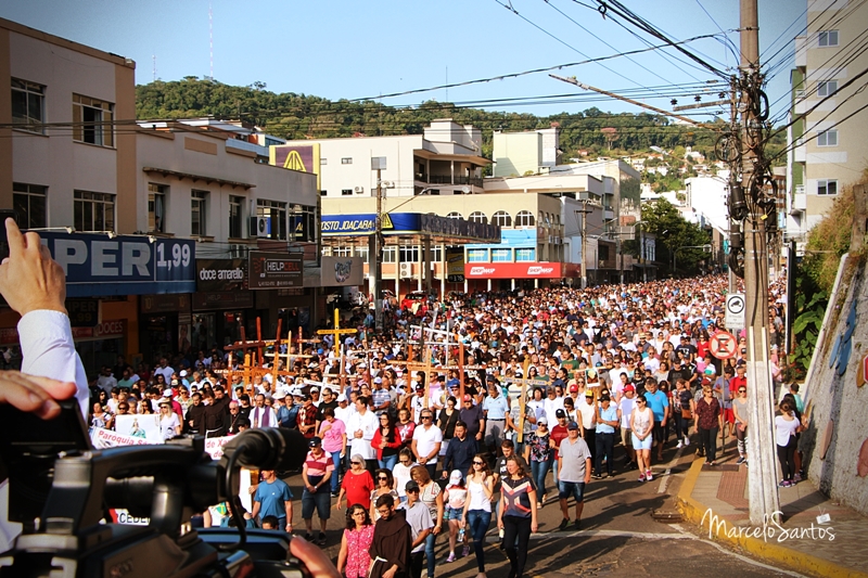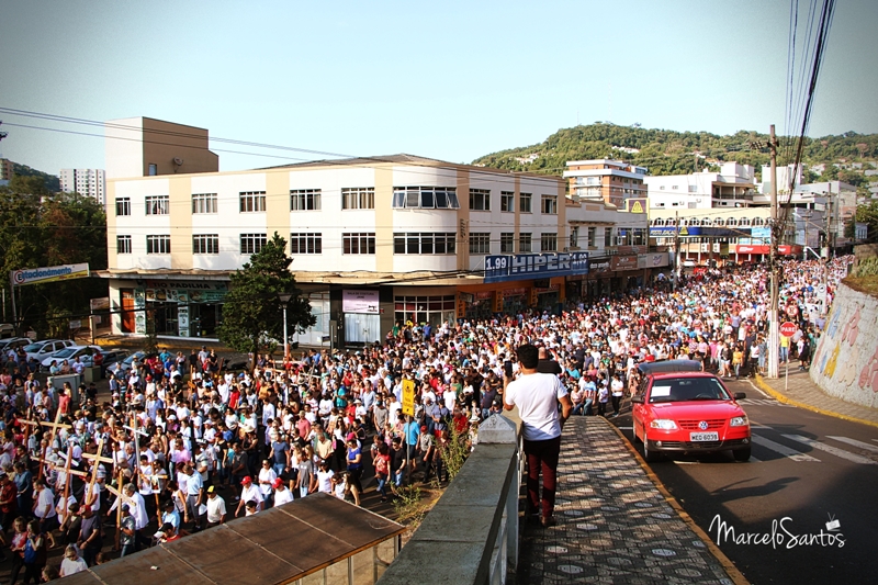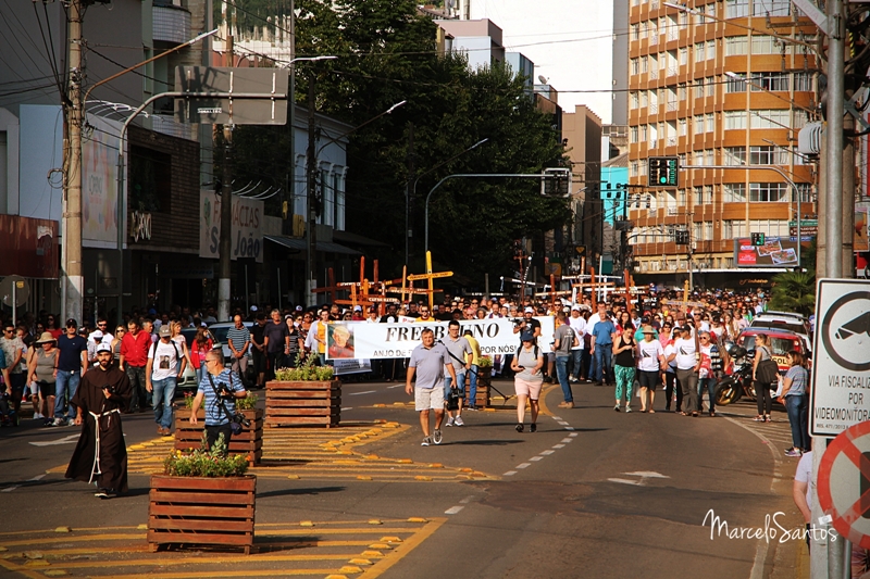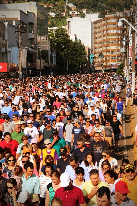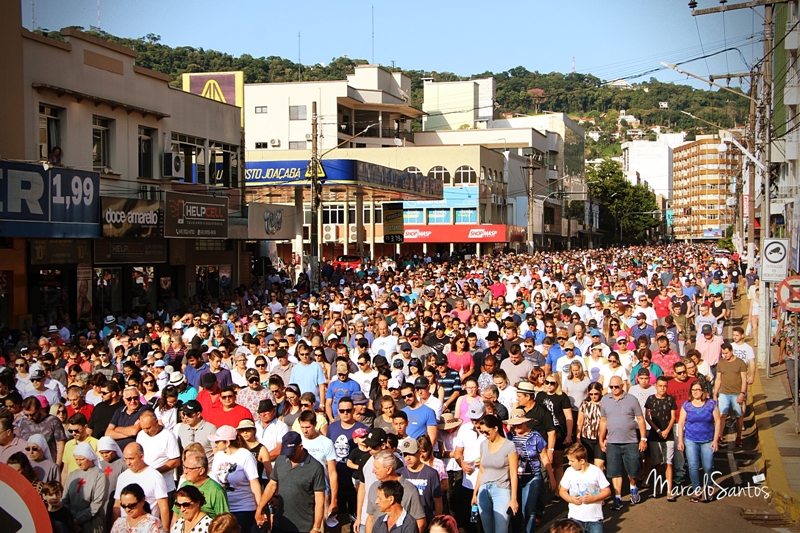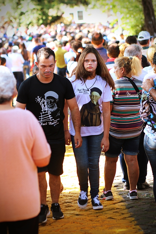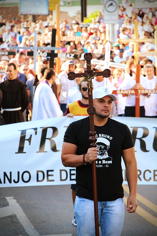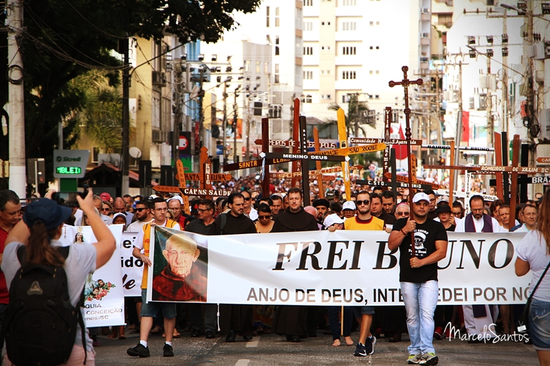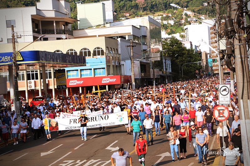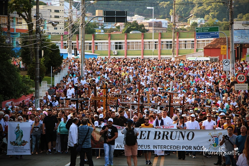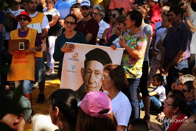Milhares de pessoas estiveram em Joaçaba neste domingo, dia 08, para participar de mais uma edição da Romaria de Frei Bruno. Foi a 30ª edição e uma das maiores em se tratando de devotos, segundo a comissão organizadora. Caravanas religiosas dos mais diversos locais do Estado chegaram cedo a Joaçaba, com ônibus, e com os devotos se concentrando nas imediações da Catedral Santa Teresinha. Por volta das 08h iniciou a caminhada de 4km da Igreja até o Cemitério Frei Edgar onde está o Jazigo de Frei Bruno. Ao longo do percurso muitas pessoas foram se juntando e formando um grande cordão humano. NO cemitério foi celebrada uma missa. Números oficiais e finais da Romaria deverão ser divulgados nesta segunda-feira.