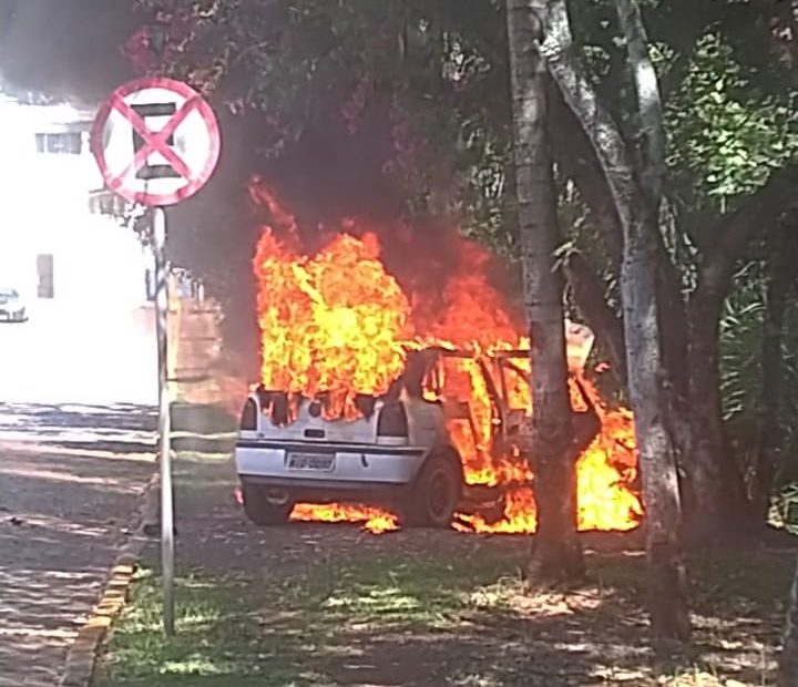 Veículo é destruído por incêndio possivelmente criminoso no centro de Capinzal