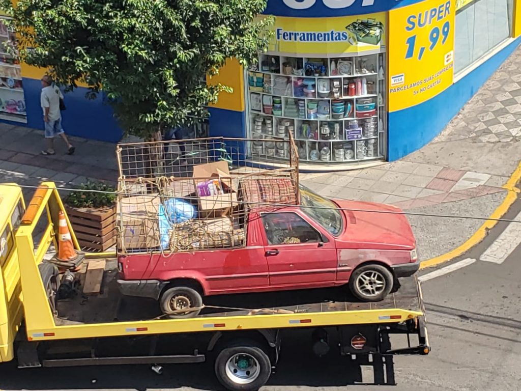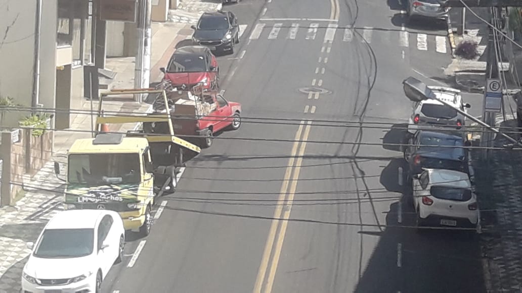 Veículo que estava estacionado na saída de garagem na 13 de Maio em Joaçaba é guinchado