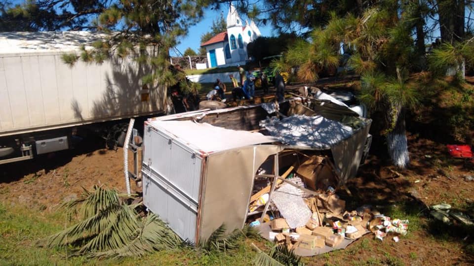 De acordo com as informações, foi uma colisão entre caminhão baú e uma carreta que transporta contêiner. Os motoristas e moradores próximos também ajudaram nos primeiros atendimentos.