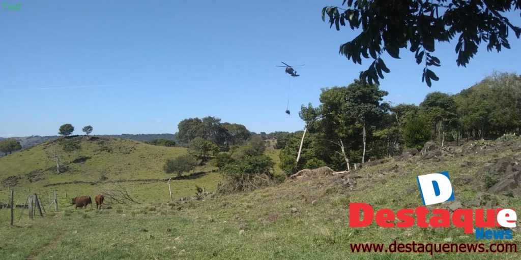 Um helicóptero da Força Aérea Brasileira, do Comando Regional da FAB de Santa Maria, esteve na manhã desta quinta-feira (23) recolhendo os destroços do caça AM-X que caiu em 2012 próximo da Usina de Machadinho. A equipe foi deslocada para o local logo depois de tomar conhecimento que as peças estavam aparecendo em razão da estiagem. Resta saber agora quais serão os encaminhamentos com este material. Os destroços deverão ser anexados no processo que investigou o acidente. Um morador que reside próximo ao local gravou com um celular a operação da FAB na manhã desta quinta-feira. Foto: Eva Terezinha Alves