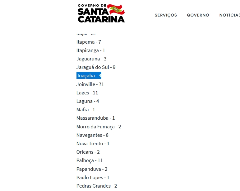 O boletim divulgado no final da tarde desta quarta-feira (15) pelo Governo do Estado, através da Secretaria de Estado da Saúde, aponta 4 casos de Coronavírus em Joaçaba.