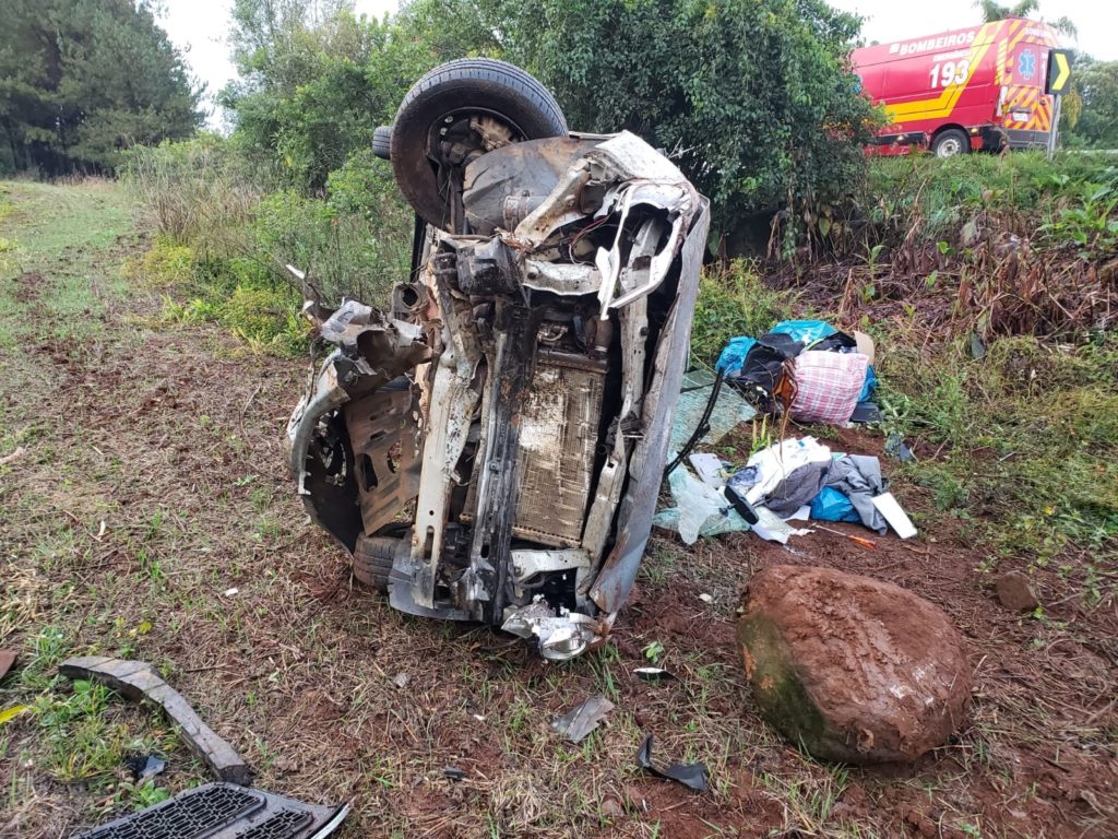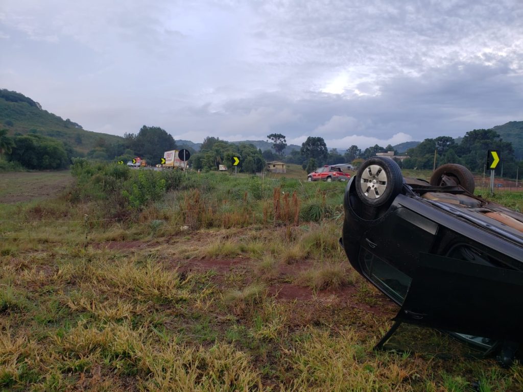 Óleo na pista provoca capotamento de veículos na BR-282 entre Joaçaba e Erval Velho