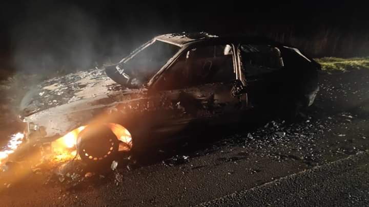 Os bandidos queimaram dois veículos durante a fuga na BR-282. Um no na região do quilômetro 301 e outro sobre uma ponte entre Vargem à Campos Novos.