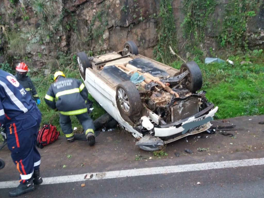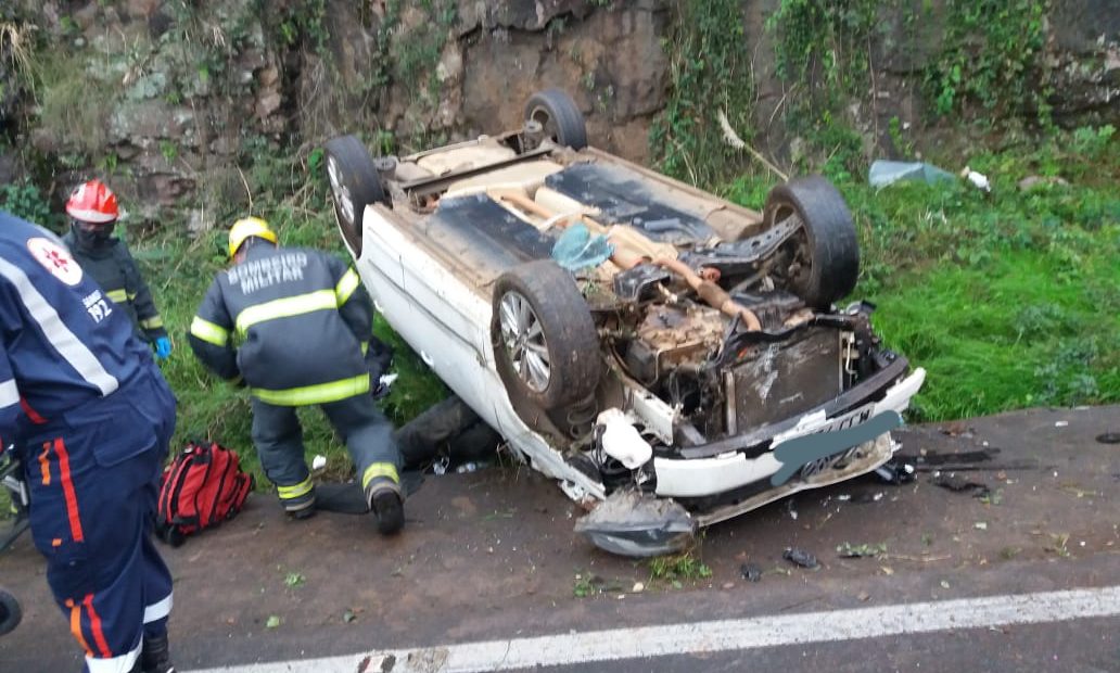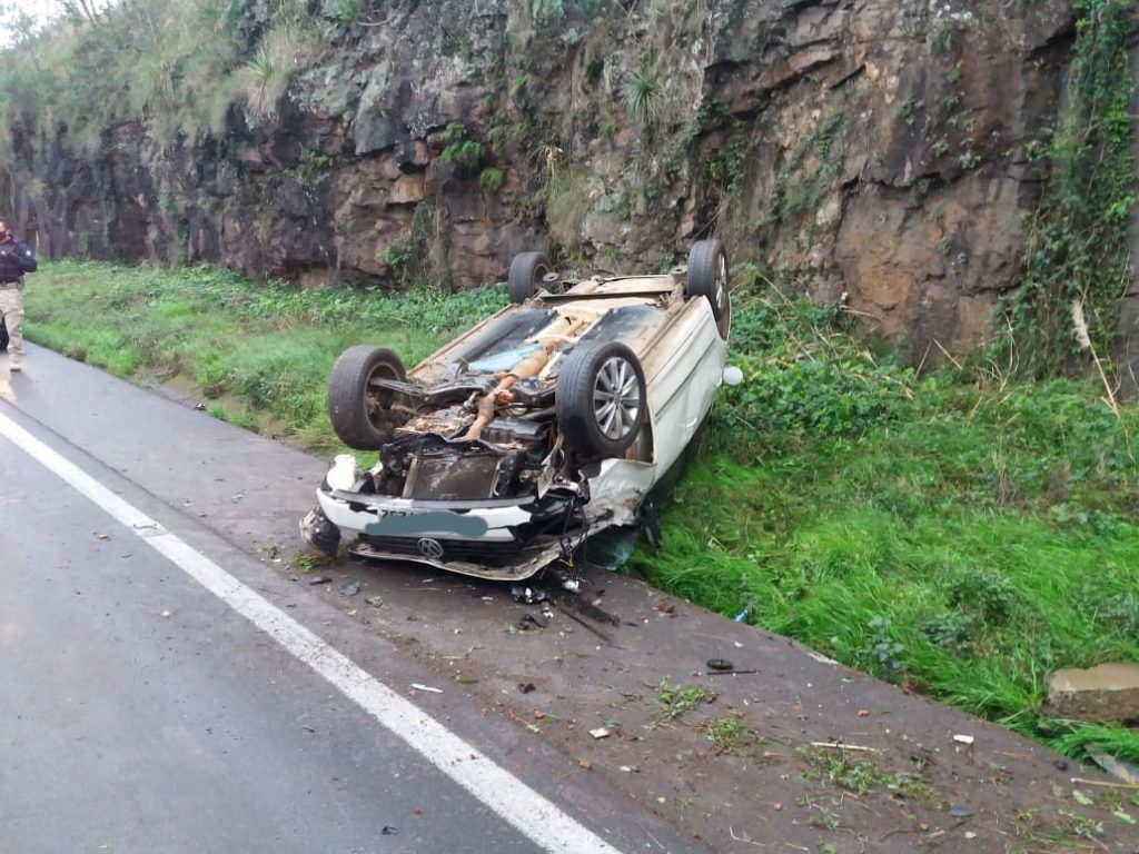 Capotamento de veículo é registrado na BR-282 em Herval d’Oeste
