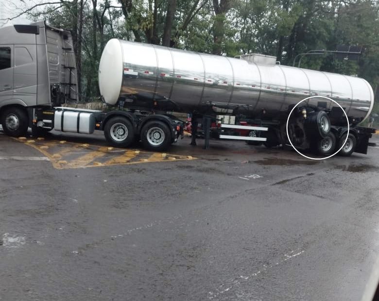 Carreta quebra na cabeceira da ponte Jorge Lacerda em Joaçaba