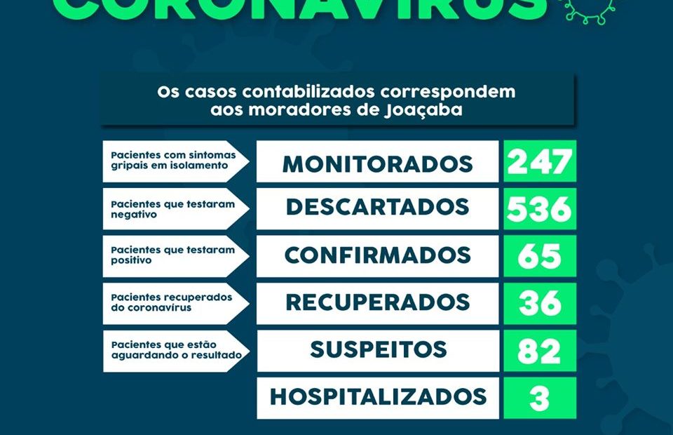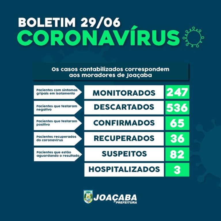 Aumenta o número de pessoas contaminadas pela Covid-19 em Joaçaba. O município está com 29 casos ativos de Coronavírus. Desde o início da pandemia foram registrados 65 casos, sendo que destes 36 se recuperaram. 3 pessoas estão hospitalizadas e 26 em isolamento domiciliar. Joaçaba também monitora 247 pessoas e existem no momento 82 pessoas suspeitas.