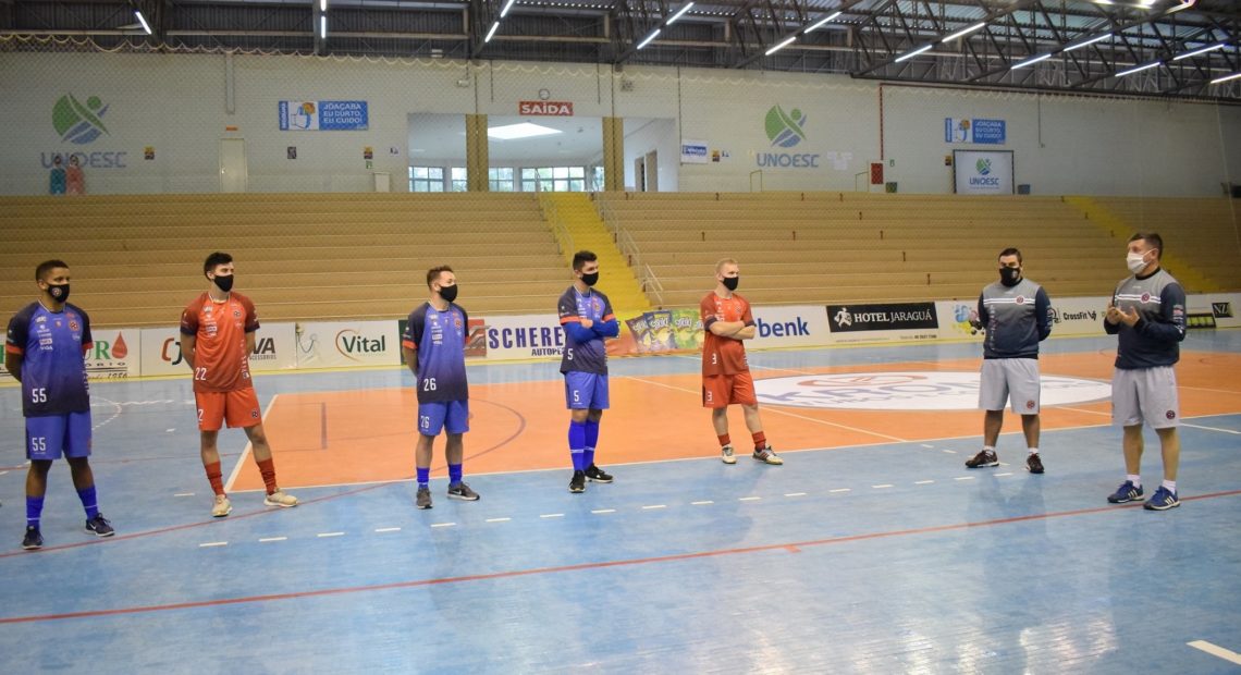 O Joaçaba Futsal retomou as atividades presenciais nesta segunda-feira (15). Após três meses de paralisação devido a pandemia, a equipe reiniciou os trabalhos no Centro de Eventos da Unoesc seguindo portaria da Secretaria de Estado da Saúde, publicada pelo Governo de Santa Catarina no dia 11 de maio, que autoriza os treinamentos no território catarinense desde que atendidos os requisitos e respeitados os protocolos de combate à Covid-19.