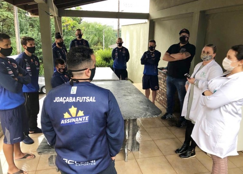 As enfermeiras Karla Simas e Michele Diesel, da Secretaria de Saúde de Joaçaba, visitaram a casa dos atletas nesta terça-feira (9) para repassar orientações de prevenção aos oito jogadores que chegaram à cidade nesta semana. Eles ficarão em isolamento social até segunda-feira (15), quando serão realizados os testes para Covid-19. A comissão técnica também será submetida aos exames.