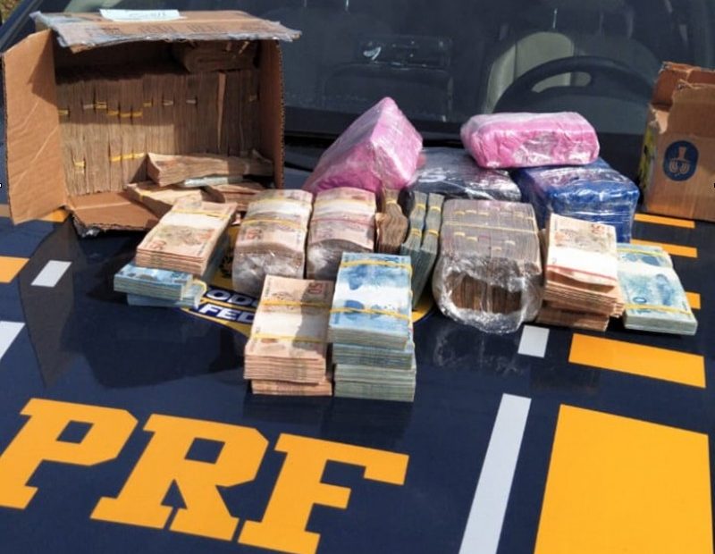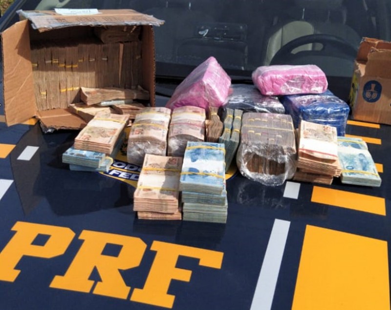A Polícia Rodoviária Federal apreendeu R$ 560 mil reais em espécie no final da manhã desta quinta-feira (18), em Biguaçu. O dinheiro estava em duas caixas de papelão, escondidas atrás do banco do motorista de uma Toyota/Hilux com placas de Santana do Livramento/RS, que foi abordada pelos policiais na BR-101.Na carroceria do veículo, que era ocupado por dois homens, foram encontradas três caixas com 24 litros de whisky importando, comprados em Rivera/Uruguai. O motorista disse que a bebida pertence a seu patrão e que recebeu R$ 2 mil para levar o dinheiro de Balneário Camboriú para Santana do Livramento, mas não revelou de quem era o dinheiro. Diante da situação os PRFs recolheram todo o dinheiro, os dois telefones celulares dos ocupantes, o veículo, as bebidas e o dinheiro e conduziram para a Polícia Federal, em Florianópolis.