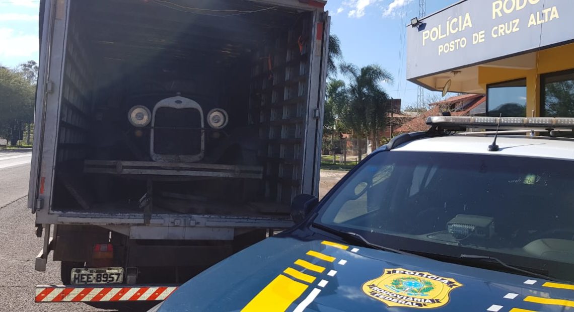 A Polícia Rodoviária Federal apreendeu um veículo antigo de origem estrangeira na manhã deste domingo (21), na BR 158, em Cruz Alta.