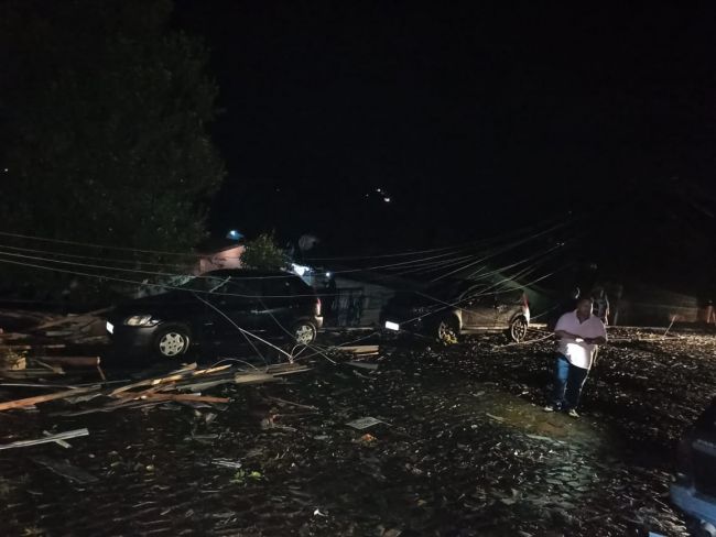Algumas casas e estabelecimentos comerciais, foram destruídos pelo forte vento, além disso, há registros de quedas de postes de energia elétrica, fiação e árvores. O Corpo de Bombeiros já faz os primeiros auxílios e o levantamento dos estragos.