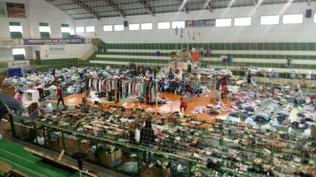 A Central de Arrecadação de Donativos de Água Doce, instalada no Ginásio Municipal de Esportes, está recebendo um volume expressivo de doações. A informação foi confirmada na manhã desta quarta-feira (19) pela Secretária de Educação, Ângela Rossa, uma das coordenadoras da Central. Ela pede para que as pessoas não doem mais roupas e agasalhos, e sim materiais de construção, como por exemplo telhas e ripas, pois o que é entregue pela Defesa Civil é limitado por família. “Hoje não temos mais necessidade de roupas, cobertores, materiais de limpeza pois o que nós já temos já é suficiente” explicou ela. A orientação é para que as pessoas levem estes materiais de construção até a Central, pois o município está encontrando dificuldades para fazer a coleta em razão da grande demanda. Muitas casas ainda precisam de telhas e estão cobertas até o momento por lonas. Precisa-se de telhas de Brasilit e madeira para fazer o ripamento dos telhados. Telhas de barro, as comuns, foram doadas em grande volume.