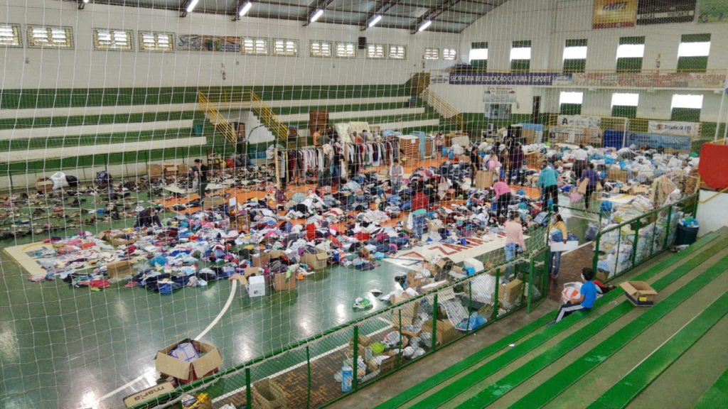 O Centro de Recebimento de Donativos do município Água Doce, instalado no Ginásio Municipal, está recebendo doações de vários municípios da região Meio-Oeste. São donativos diversos envolvendo roupas, alimentos, utensílios domésticos, colchões, cobertores e muitos outros. O local está lotado mostrando um grande espírito de solidariedade regional. O responsável pela Defesa Civil no município, Rogério Heberle, explicou que a distribuição as famílias atingidas acontece durante todo o dia no próprio local.