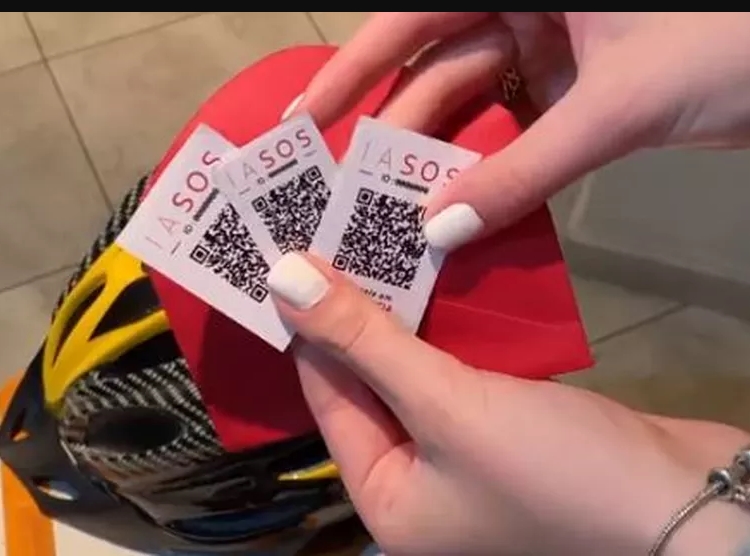 Um “QR Code”, que funciona como um código de barras, impresso em um adesivo dá acesso às informações pessoais e médicas do proprietário, que pode ser usado pelos bombeiros ou profissionais de saúde em caso de emergência.
