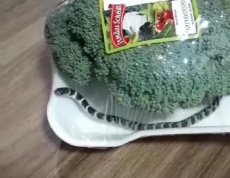 Uma cobra foi encontrada dentro de uma embalagem de brócolis comprada em um supermercado de Brusque, no Vale do Itajaí. A moradora percebeu o animal apenas quando chegou em casa, gravou um vídeo — que está ganhando repercussão na internet — e voltou ao estabelecimento para devolver o produto. O caso aconteceu no último fim de semana.