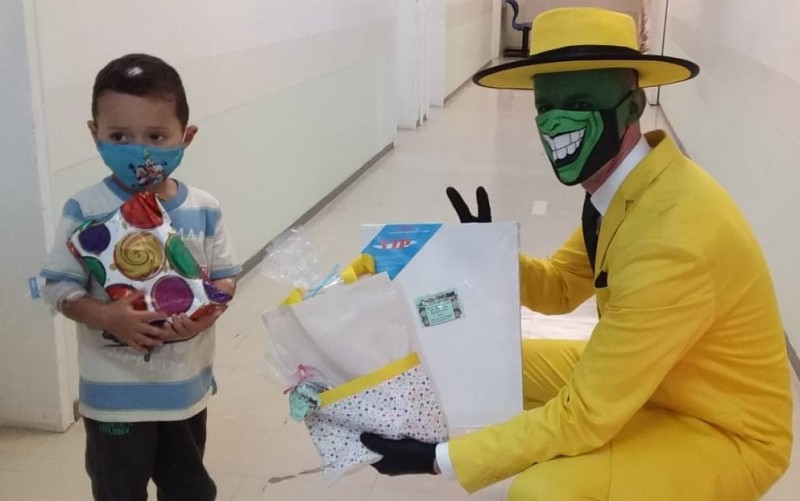 Personagem Máskara proporciona alegria às crianças internadas no HUST