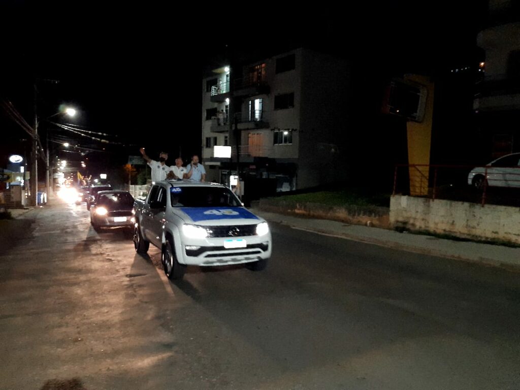 Uma carreata foi realizada na noite desta segunda-feira em Joaçaba para comemorar a reeleição do prefeito Dioclésio Ragnini do PSDB. Ele venceu as eleições somando 7.853 votos. Rafael Laske (PL) o segundo colocado na disputa fez 6.907.