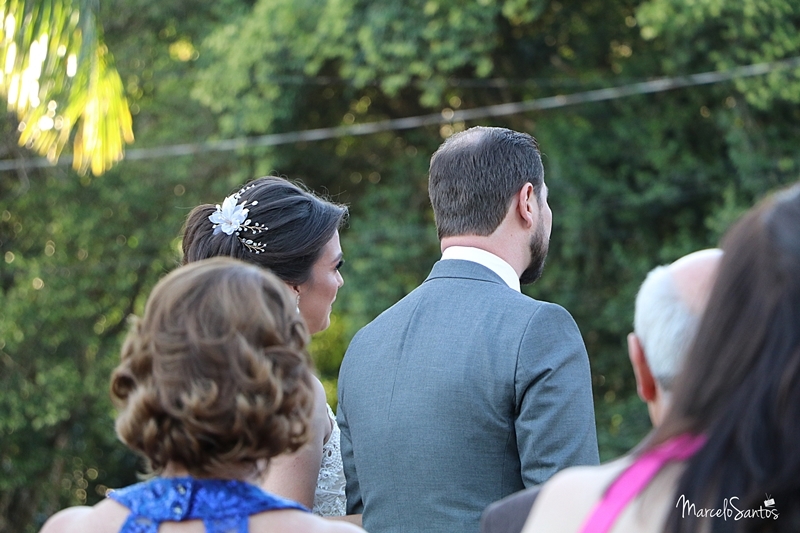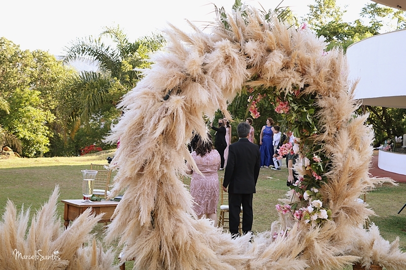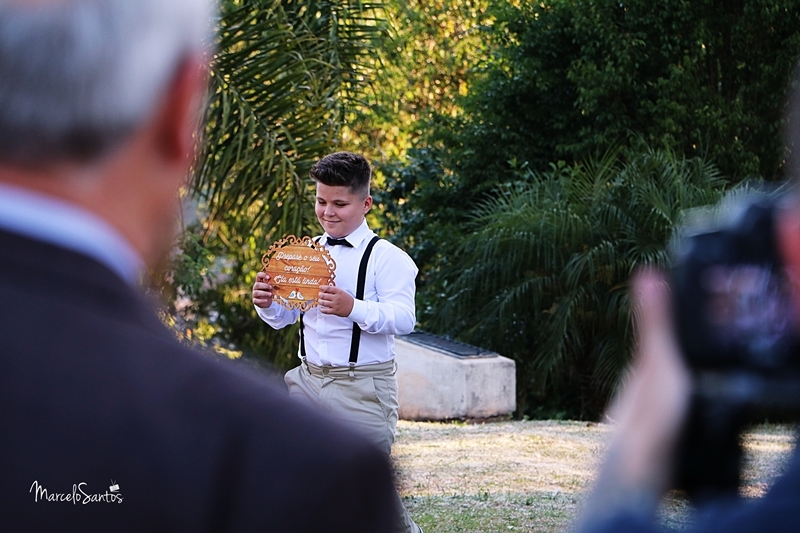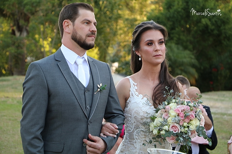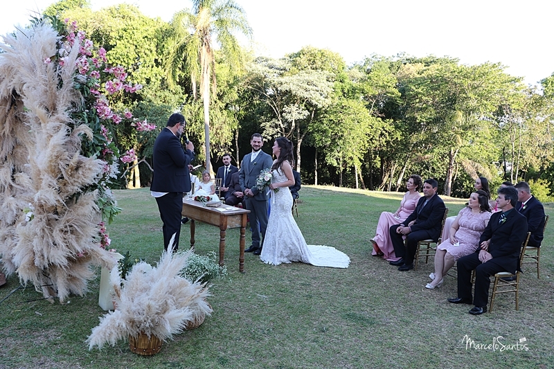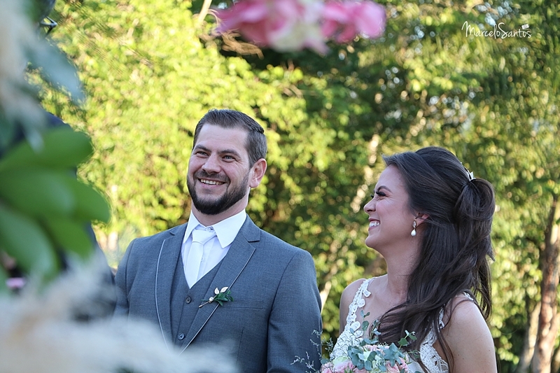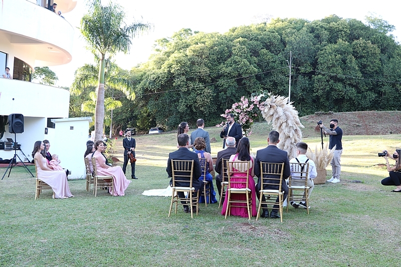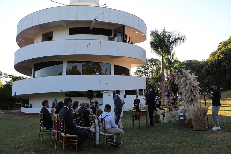 A cerimônia que aconteceu no final da tarde durou 1h, reuniu familiares e amigos, e entrou para a história como o primeiro a ser realizado no Monumento Frei Bruno. A celebração aconteceu no gramado, no entardecer, e as fotos foram feitas na base da estátua tendo como cenário de fundo o Vale do Rio do Peixe.
