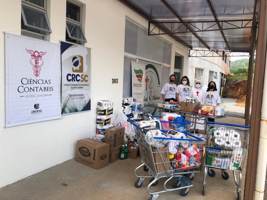 A Unoesc, por meio do Curso de Ciências Contábeis, e o Conselho Regional de Contabilidade (CRC) entregaram na quinta-feira (26), os donativos arrecadados na campanha solidária com o objetivo de ajudar a Associação Filhas de São Camilo – Residencial Nossa Senhora de Fátima de Erval Velho. A entidade atende atualmente 35 idosos de várias cidades oferecendo-lhes cuidado integral.