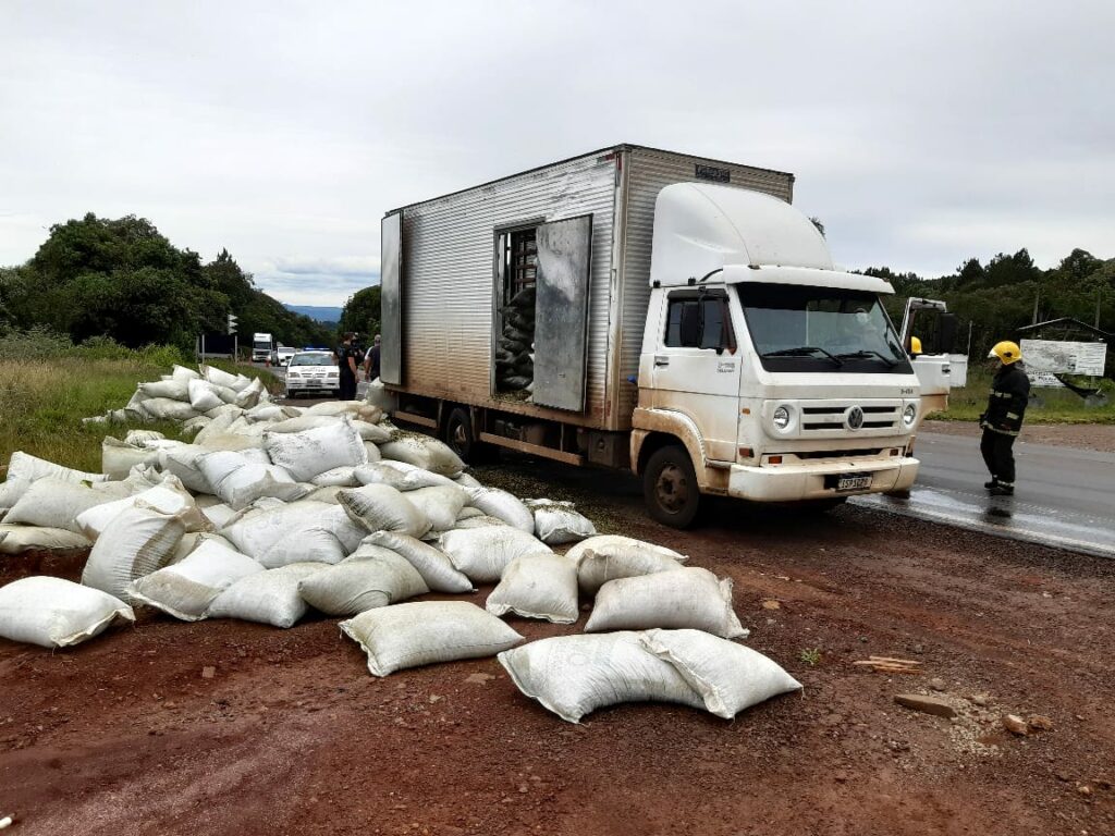 O Corpo de Bombeiros atendeu na tarde desta sexta-feira (04) um princípio de incêndio envolvendo um caminhão com placas do Paraná na BR-282 próximo ao CPJ em Joaçaba. O motorista relatou que trafegava pela rodovia quando percebeu pelo retrovisor uma fumaça saindo do rodado traseiro. Ele parou o veículo no acostamento e percebeu que o fogo iniciou porque o pneu estava encostando na carroceria. O Corpo de Bombeiros chegou rapidamente no local e evitou que as chamas provocassem maiores prejuízos. O caminhão tinha como destino Jaborá e transportava cerca de 5 toneladas de Erva Mate.