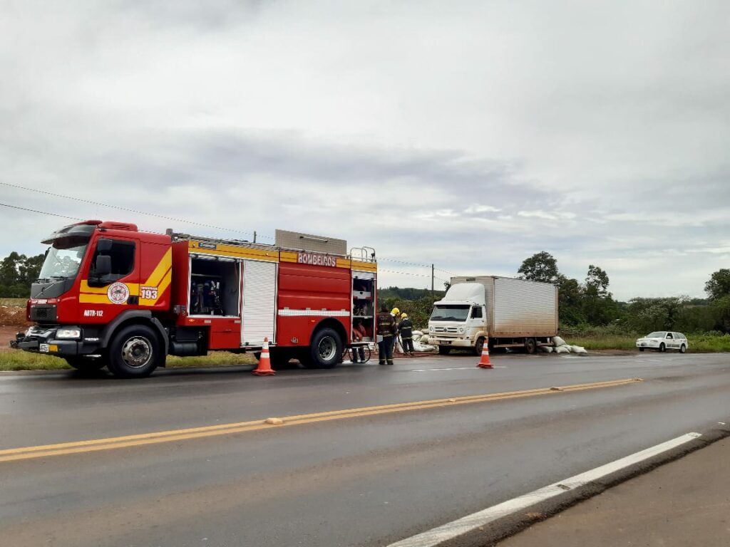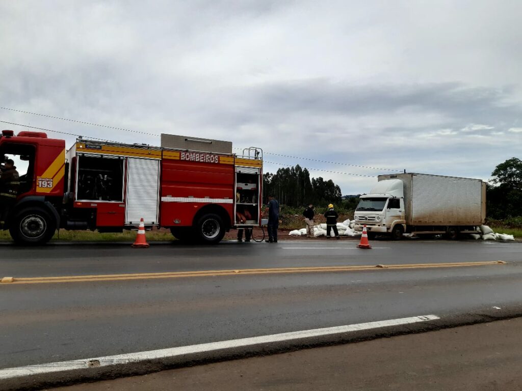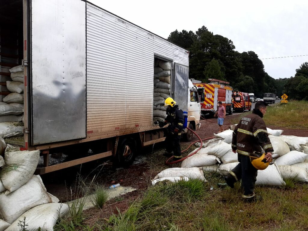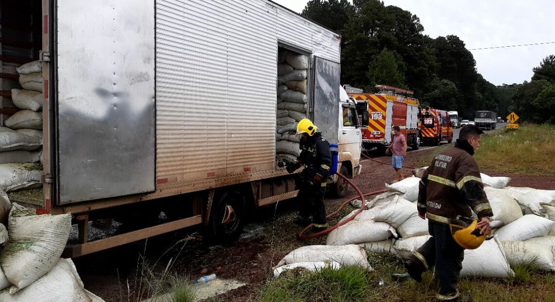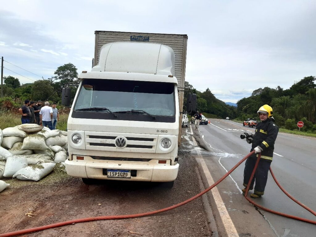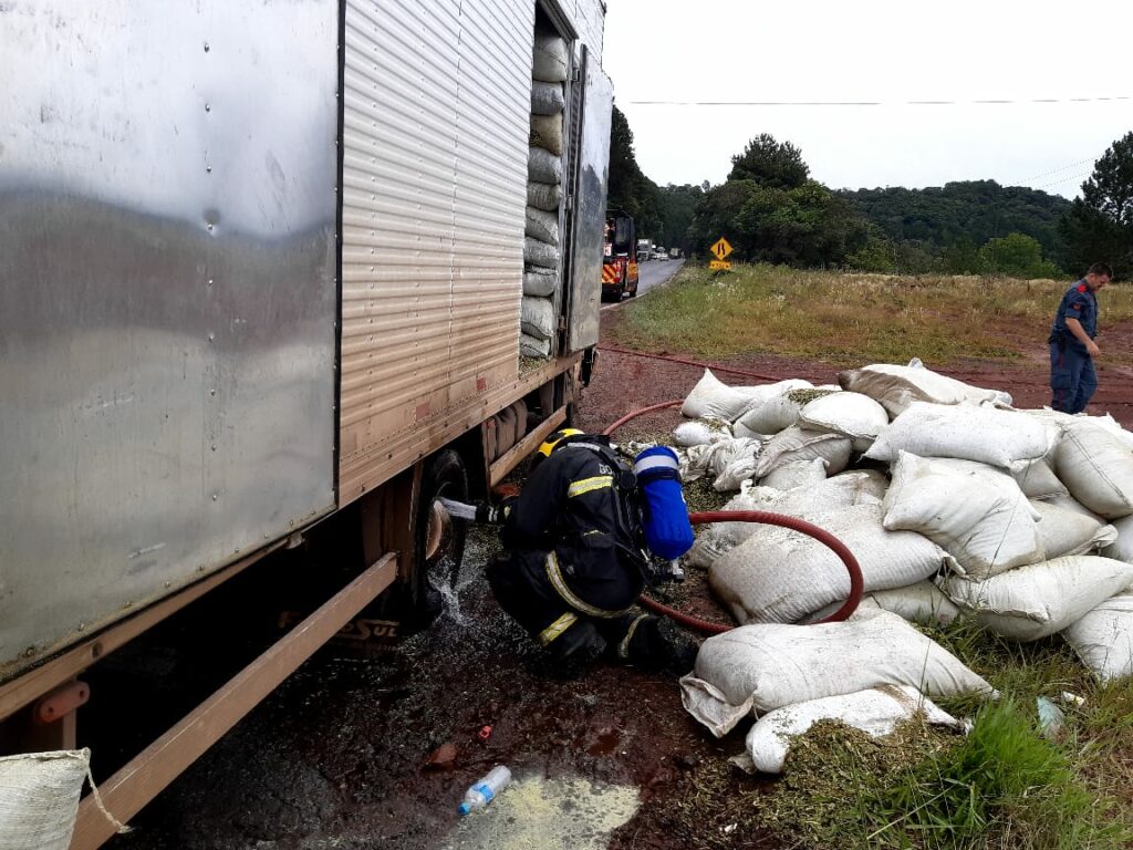 Bombeiros atendem princípio de incêndio em caminhão na BR-282 em Joaçaba