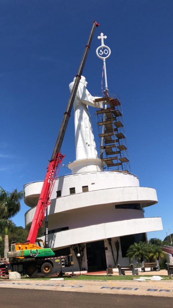 O cajado de Frei Bruno, peça que foi derrubada por um forte vendaval em junho deste ano, já foi recolocado na estátua junto ao Monumento no bairro Flor da Serra, em Joaçaba. Nesta terça-feira (22), uma grande operação foi montada para transportar e reposicionar a peça em seu local de origem.