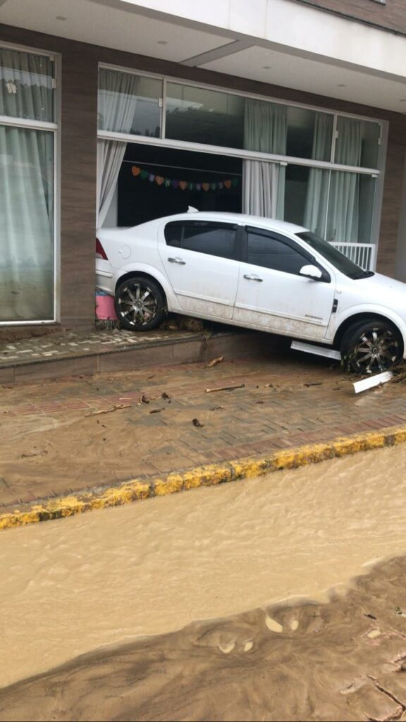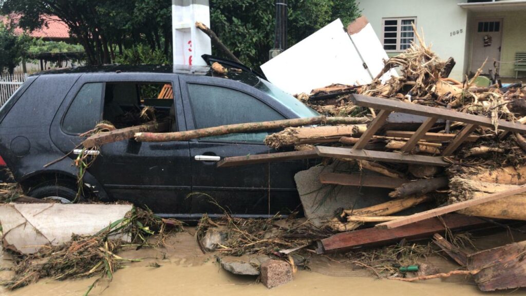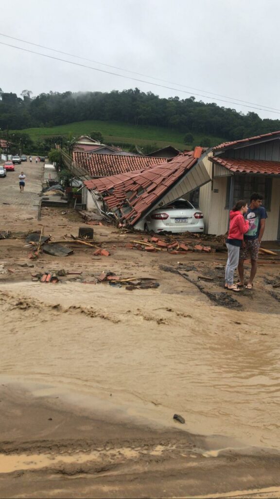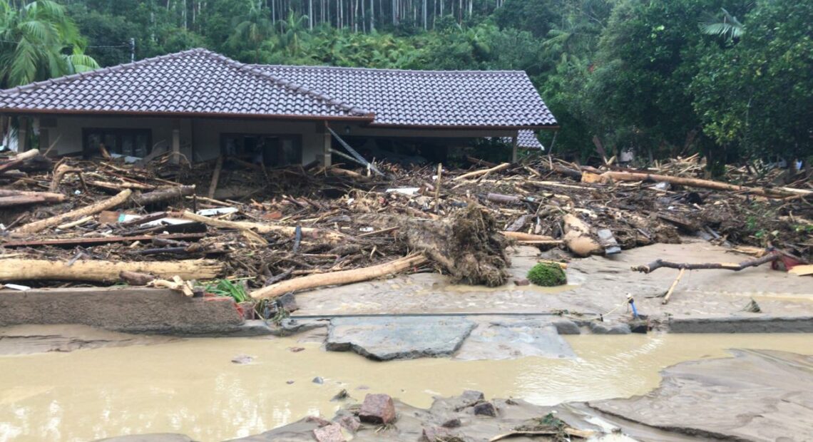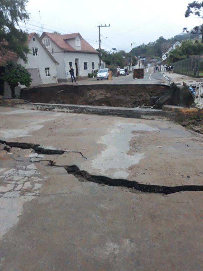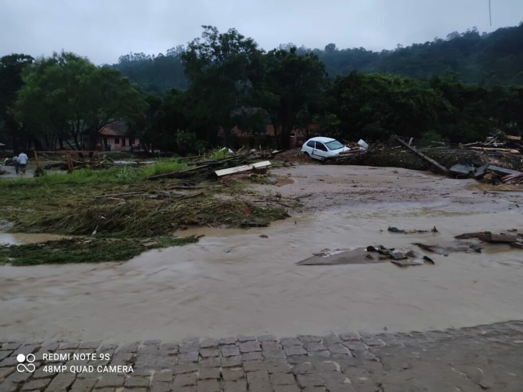 O acesso à cidade, que fica a cerca de 80 quilômetros de Blumenau, está bloqueado por causa de deslizamentos de terra. Por volta de 9h30 não chovia mais na região.