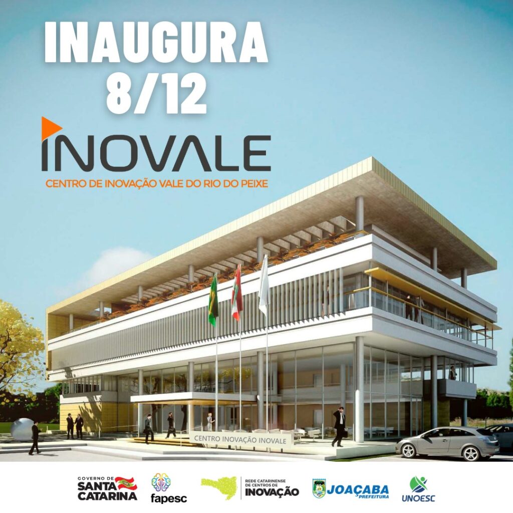 Joaçaba e outros 21 municípios que fazem parte do Polo de Inovação Vale do Rio do Peixe – INOVALE, terão à disposição o Centro de Inovação Vale do Rio do Peixe, estrutura que será entregue pelo Governo do Estado nesta terça-feira (08).  A solenidade híbrida por conta da pandemia e do nível de gravidade na região, terá início às 11h. A imprensa poderá acompanhar presencialmente o evento, mediante cadastramento prévio e com número limitado de inscritos.