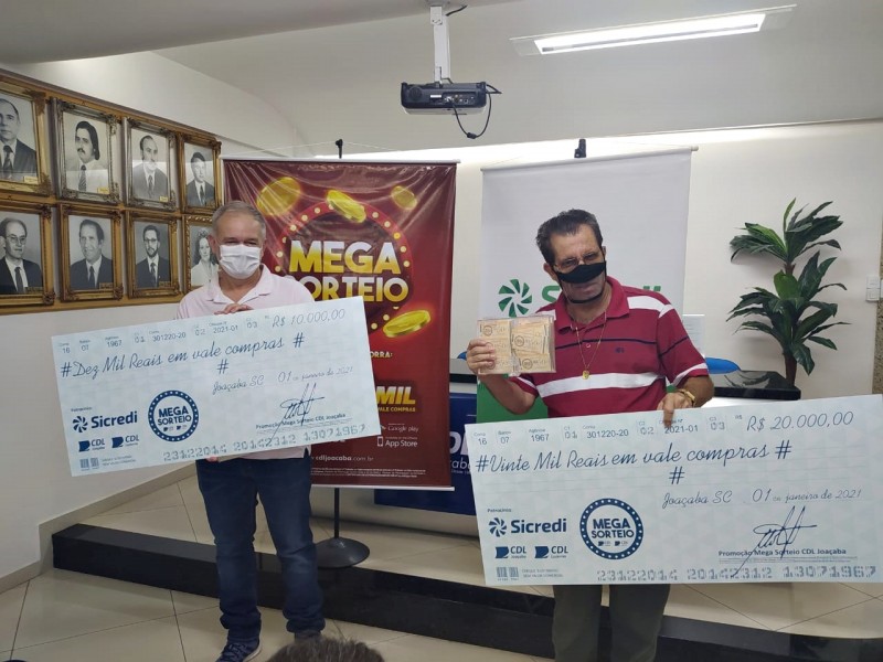 Fazer compras sem se preocupar com a conta. Será assim nos próximos dias para Gerson de Souza e Julcimar Antonio, premiados com R$ 10 e R$ 20 mil em compras na promoção “Mega Sorteio”, realizada pela Câmara de Dirigentes Lojistas de Joaçaba (CDL), que distribuiu ao todo R$ 200 mil reais em prêmios.