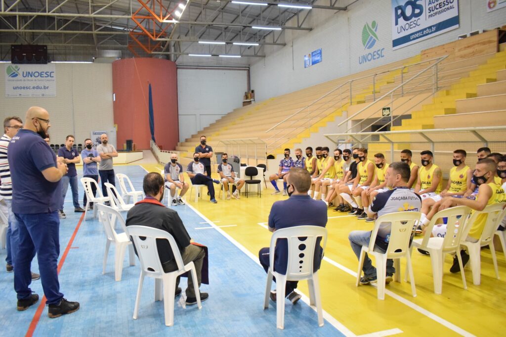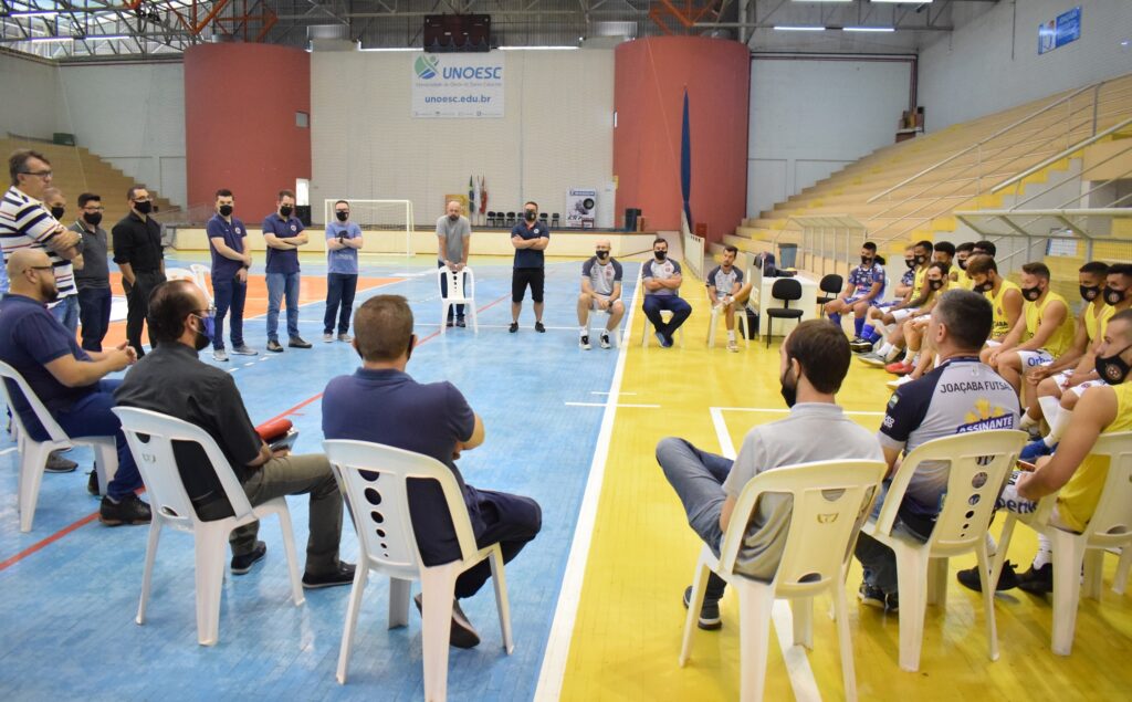 Os jogadores e os profissionais da comissão técnica foram recepcionados pelo presidente Gustavo Locatelli e demais integrantes da diretoria, no Centro de Eventos da Unoesc. A apresentação também foi marcada pela benção do padre Pedro Ângelo Manchini, pároco de Joaçaba.