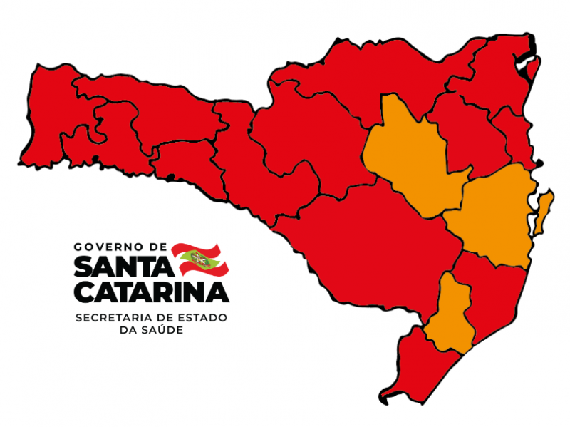 A Matriz de Risco Potencial divulgada nesta quarta-feira (13) pelo Governo de Santa Catarina e Secretaria de Estado da Saúde (SES) classifica 13 das 16 regiões de saúde do estado como em alerta gravíssimo (cor vermelha) para transmissão do novo coronavírus. No último boletim, divulgado no dia 7, eram 10 regiões em estado gravíssimo.