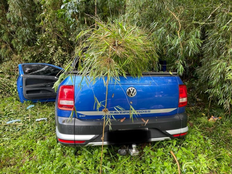 Quatro pessoas ficaram feridas depois que uma VW/Saveiro com placas de Fraiburgo saiu da pista e colidiu contra uma árvore na tarde deste domingo (3) na BR-282, em Vargem Bonita. O acidente ocorreu por volta das 14h50min.