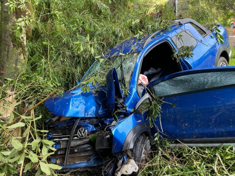 Saída de pista seguida de choque em árvore deixa 4 feridos em Vargem Bonita