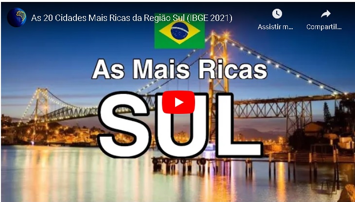 O Estado de Santa Catarina desponta em pesquisa do IBGE, divulgada neste inicio de 2021, com seis cidades entre as 20 mais ricas da região, na avaliação do PIB e da renda per capita. O Rio Grande do Sul tem apenas cinco municípios e o Paraná desponta com os 10 mais ricos.