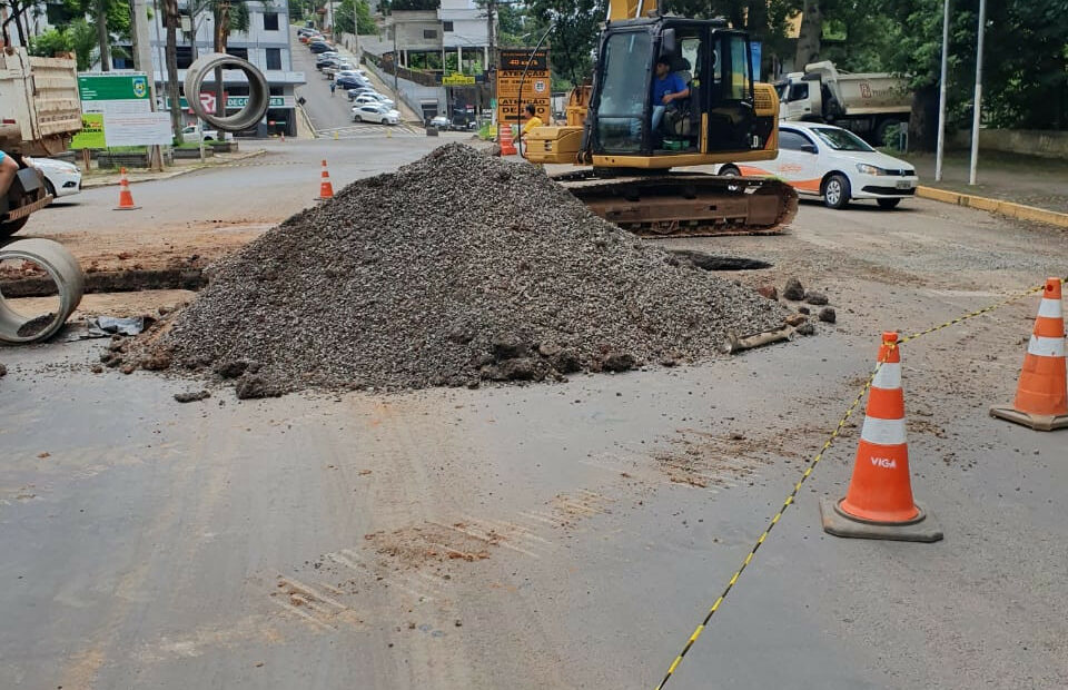 Iniciou no final de semana, os trabalhos de troca de drenagem pluvial com tubulação na rótula da antiga rodoviária. A obra faz parte do processo de pavimentação asfáltica dos três acessos: Avenidas Santa Terezinha e Caetano Natal Branco e Acesso Egídio Pozzobon.