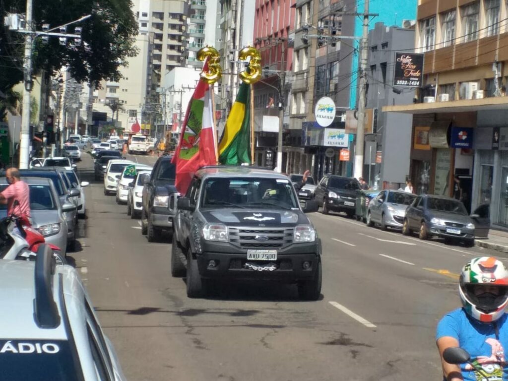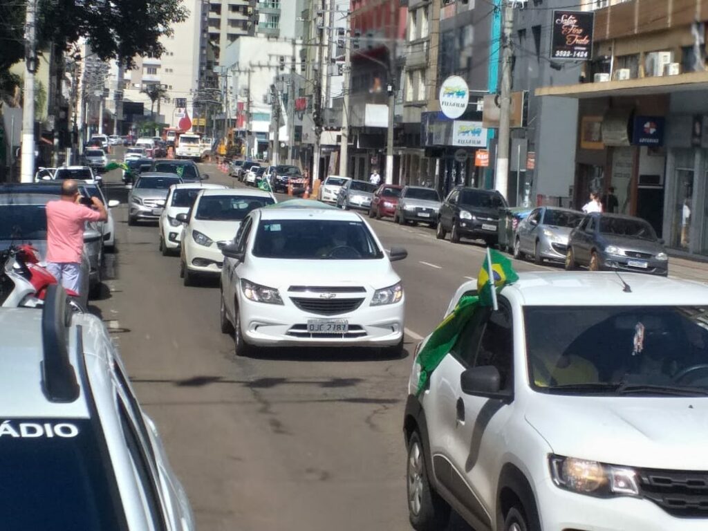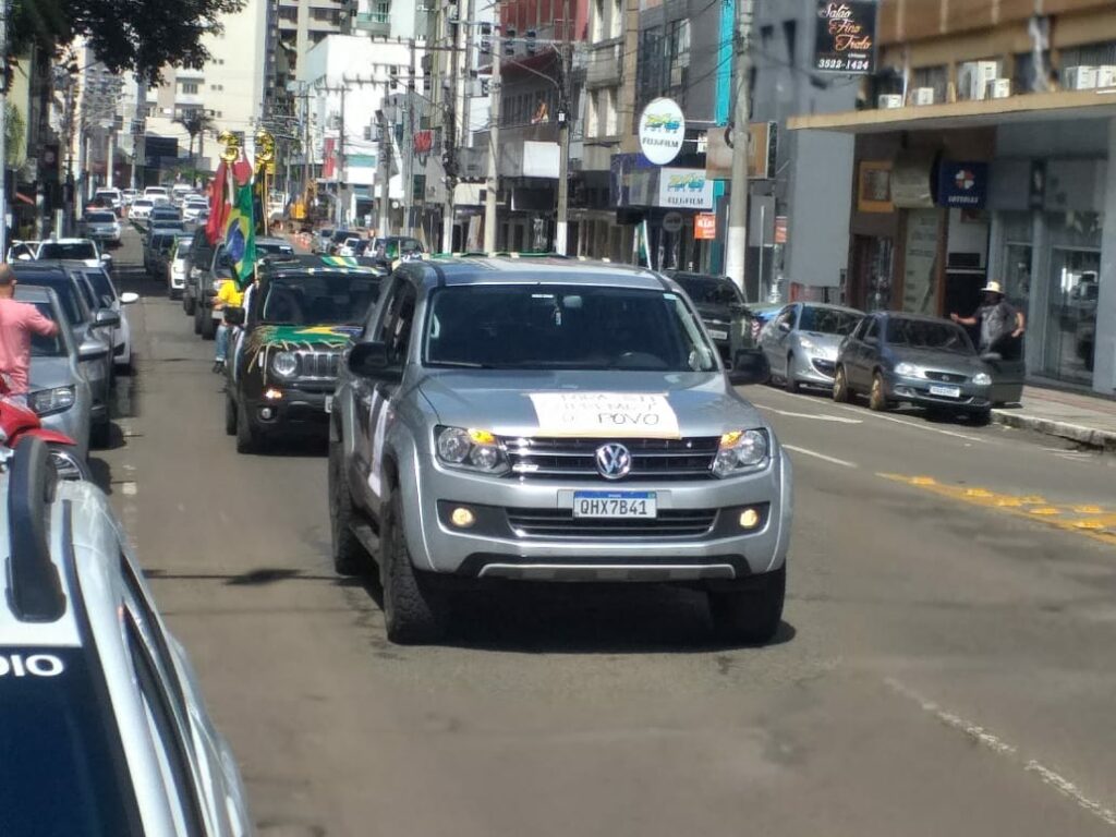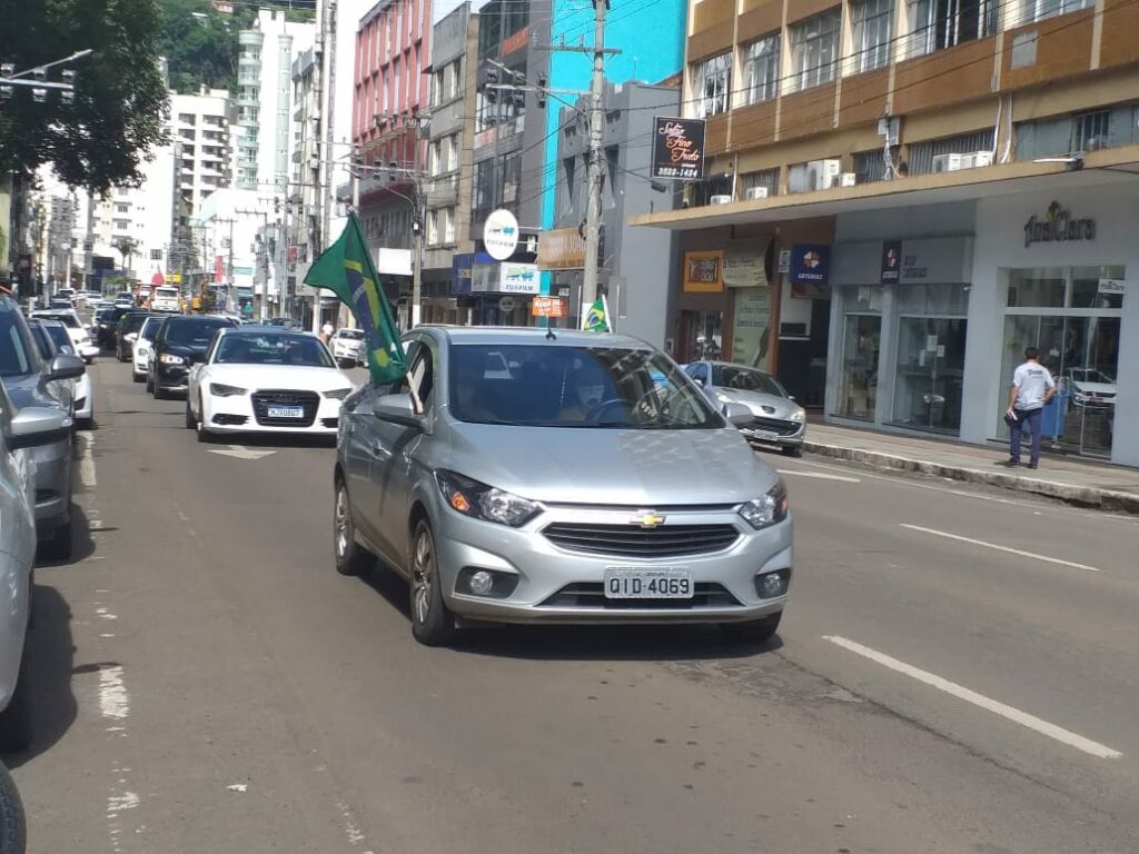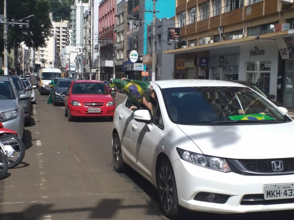 Uma grande carreata foi realizada na manhã deste sábado (06) em Joaçaba tendo por objetivo principal protestar contra o fechamento do comércio como medida de enfrentamento a pandemia e apoio ao presidente Jair Bolsonaro contra ao STF, além de outros pontos, como cobrar do Governador Carlos Moisés explicações sobre os R$ 33 milhões pagos pelos respiradores não entregues a SC.