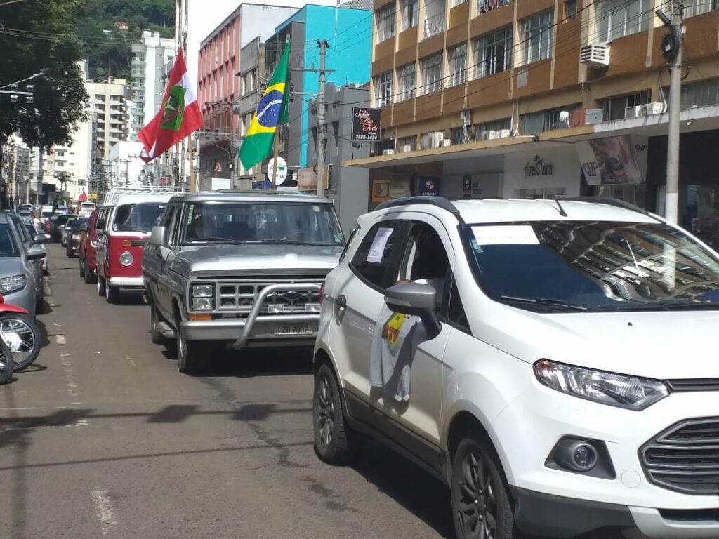 Os manifestantes saíram do pátio da HAVAN e percorreram algumas ruas de Joaçaba e Herval d’Oeste com carro de som, faixas e cartazes.