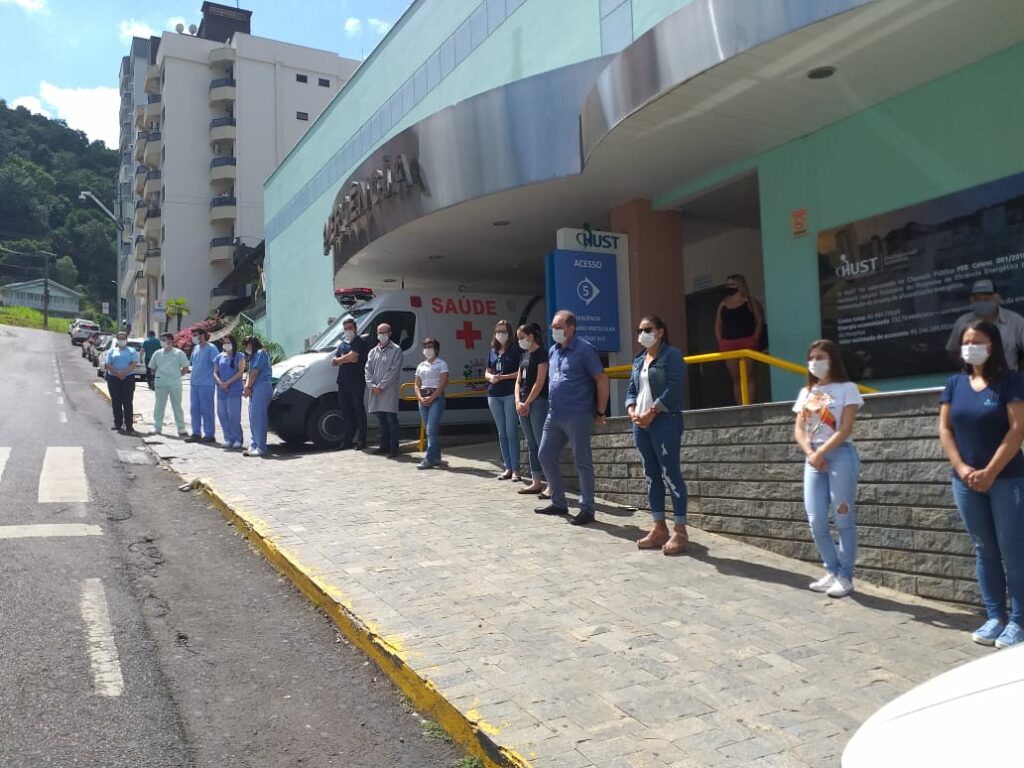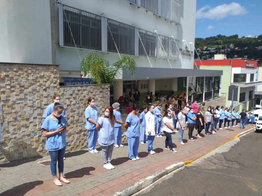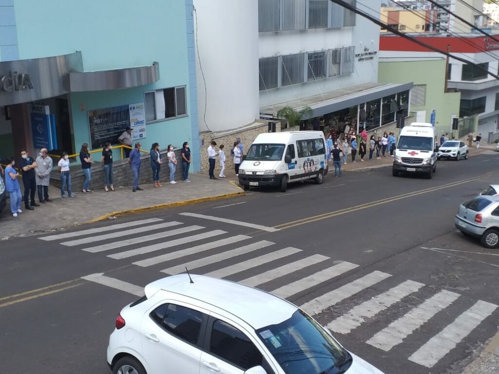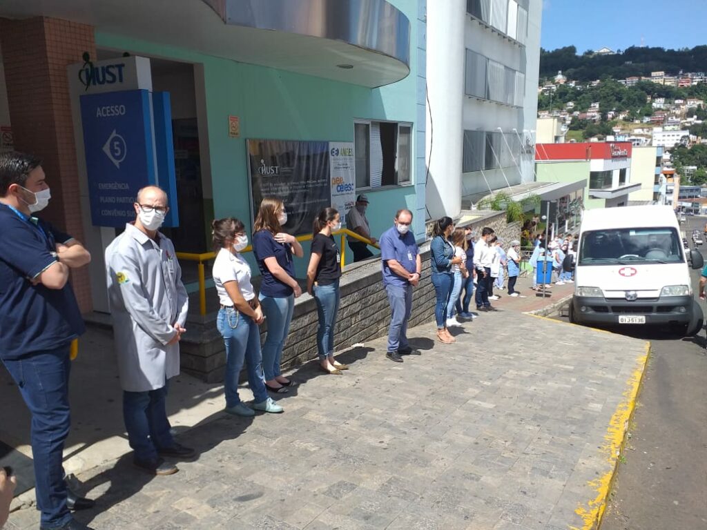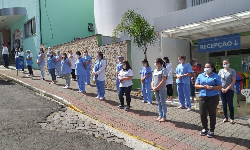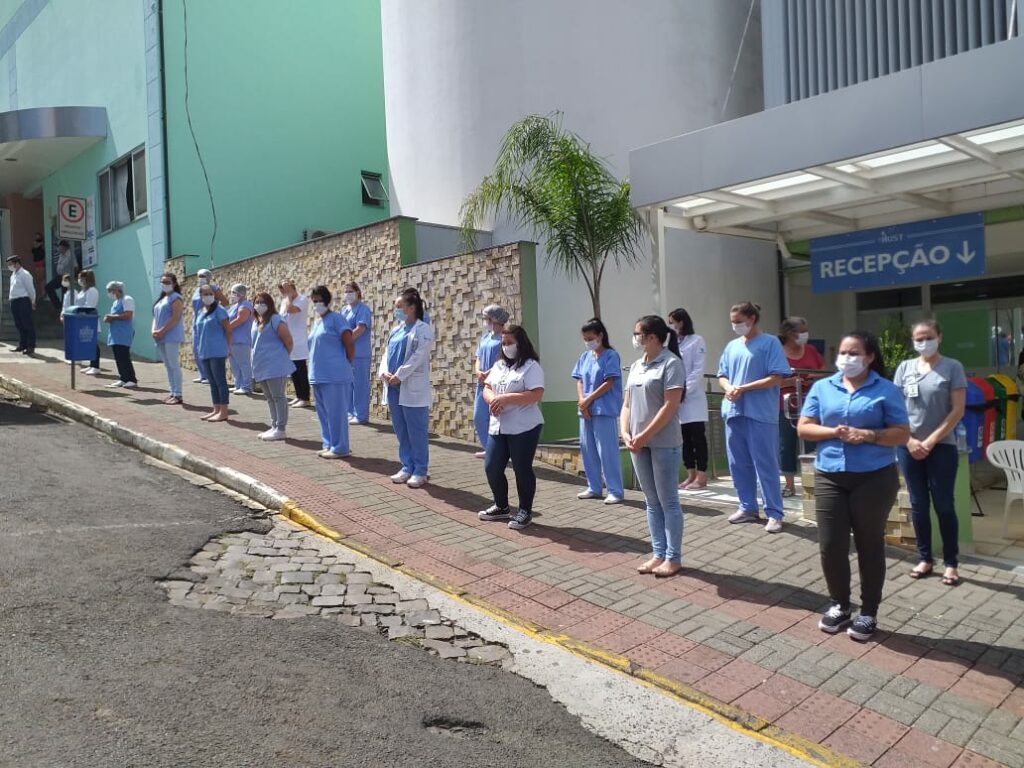 Em Joaçaba um dos atos aconteceu em frente ao HUST com a participação de médicos, enfermeiras, gestores e demais colaboradores do hospital.