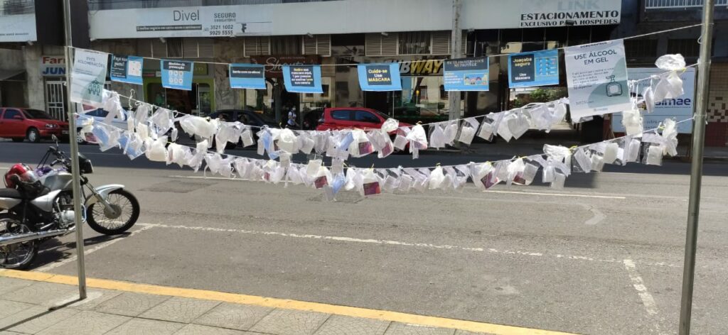 A Secretaria de Assistência Social reiniciou nesta terça-feira (16), a ação “Varal Solidário” de máscaras. A estrutura similar a um varal, que disponibiliza máscaras de proteção facial de tecido gratuitamente para população, foi montada em frente à prefeitura. A ação já tinha sido feita em 2020 e é mais uma forma de conscientizar a população sobre a importância do uso de máscaras. Nesta edição teve o apoio dos colaboradores da Vigilância Sanitária, que também participaram do ato de conscientização.