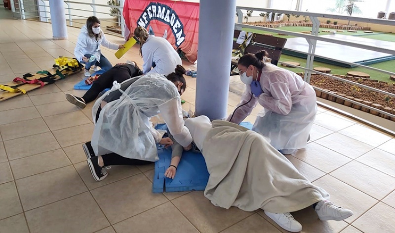 O curso de Enfermagem da Unoesc Joaçaba-SC, buscando oferecer novas oportunidades de aprendizado aos seus acadêmicos vem realizando ao longo deste semestre, estágio em campos práticos, estimulando e desenvolvendo as habilidades dos estudantes em situações de urgência e emergência através de simulações no Laboratório de Habilidades da universidade. As atividades foram organizadas com o apoio da Coordenação do Curso de Enfermagem, representada pela professora Márcia da Rocha Restelatto, com a elaboração e supervisão das professoras enfermeiras Gisele Viana, Simone Triquez, Luana Turra, Petra Zieher, Anne Letti e Mariane de Almeida.