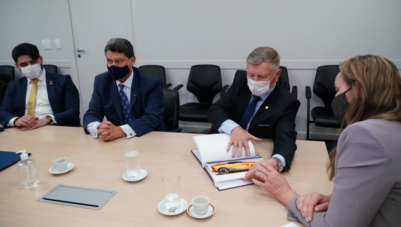 A governadora Daniela Reinehr recebeu representantes da Lamborghini Latinoamérica no Brasil para uma audiência no Centro Administrativo na tarde desta quinta-feira, 22. A empresa, com sede no México, detém licença para uso da marca europeia na América Latina. No encontro, a diretoria da companhia anunciou a decisão de se instalar em Santa Catarina. A reunião contou com a presença do CEO da empresa Jorge Antonio Fernández Garcia, o sócio local, Gilson Pierri, de Rio do Sul, do deputado estadual Milton Hobus, além do chefe da Casa Civil, Gerson Luiz Schwerdt, e dos secretários da Fazenda, Rogério Macanhão, do Desenvolvimento Econômico Sustentável, Luciano Buligon, e da secretária Executiva de Assuntos Internacionais, Daniella Abreu.