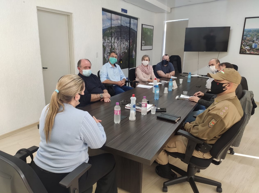 A Secretaria de Educação de Joaçaba reuniu-se na última semana com representantes do Ministério Público, Polícia Civil, Polícia Militar e Corpo de Bombeiros para falar sobre a segurança nas escolas. Na oportunidade, foram analisados os protocolos de segurança já existentes e discutida a ampliação de novas medidas.