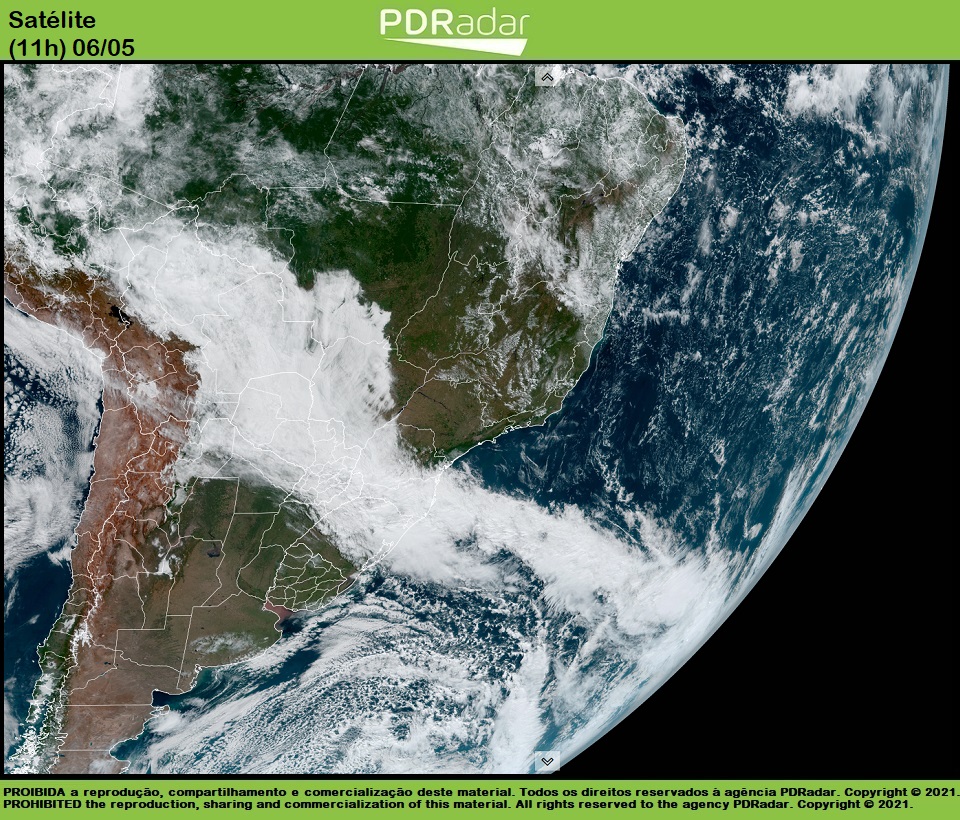 Imagens de Satélite mostram frente fria avançando pela América do Sul
