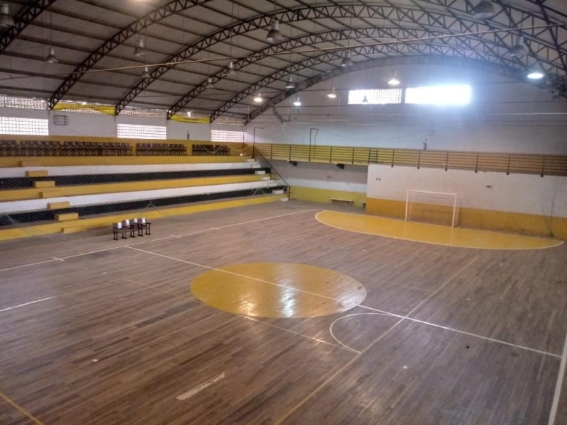 A reforma da quadra consiste em remoção do piso em madeira, contrapiso e piso em concreto polido com pintura epóxi, substituição de portas dos vestiários e sanitários, revestimento na escadaria de acesso, execução de estacionamento externo em concreto para vaga de Pessoas com Deficiência Física, adequação dos sanitários e pintura interna.