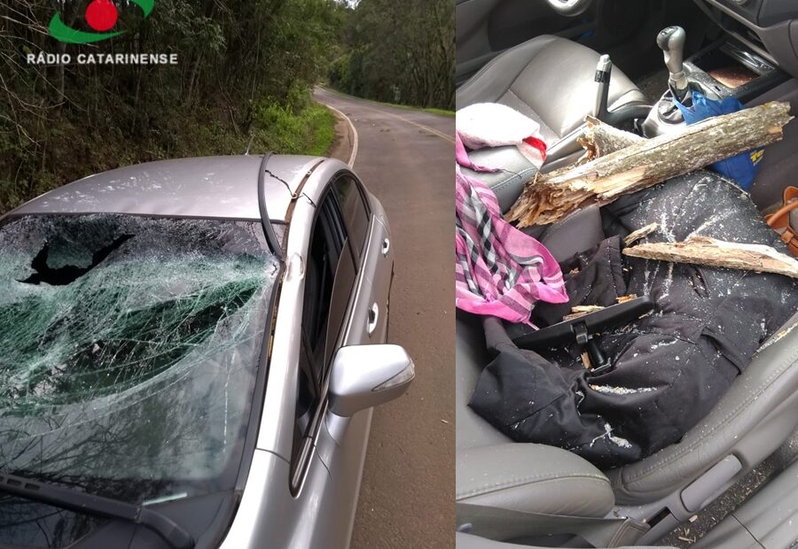 Galho atinge veículo em movimento entre Água Doce e Luzerna