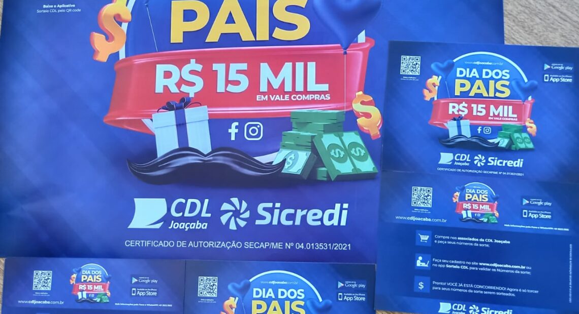 A Câmara de Dirigentes Lojistas de Joaçaba (CDL) lançou a promoção “DIA DOS PAIS 2021”. Serão sorteados R$ 15 mil em vale-compras no dia 18 de agosto pela extração da Loteria Federal. Os consumidores contemplados serão conhecidos no dia 19. Os prêmios são de R$ 250 a R$ 3 mil num total de 38 vale-compras. Os associados da CDL que participam da promoção já estão distribuindo os números da sorte aos seus clientes. A promoção é realizada em parceria com o SICREDI.