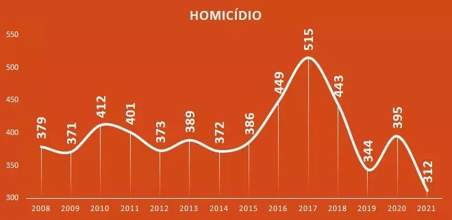Índices de homicídio em Santa Catarina desde 2008 – Foto: SSP/Reprodução/ND