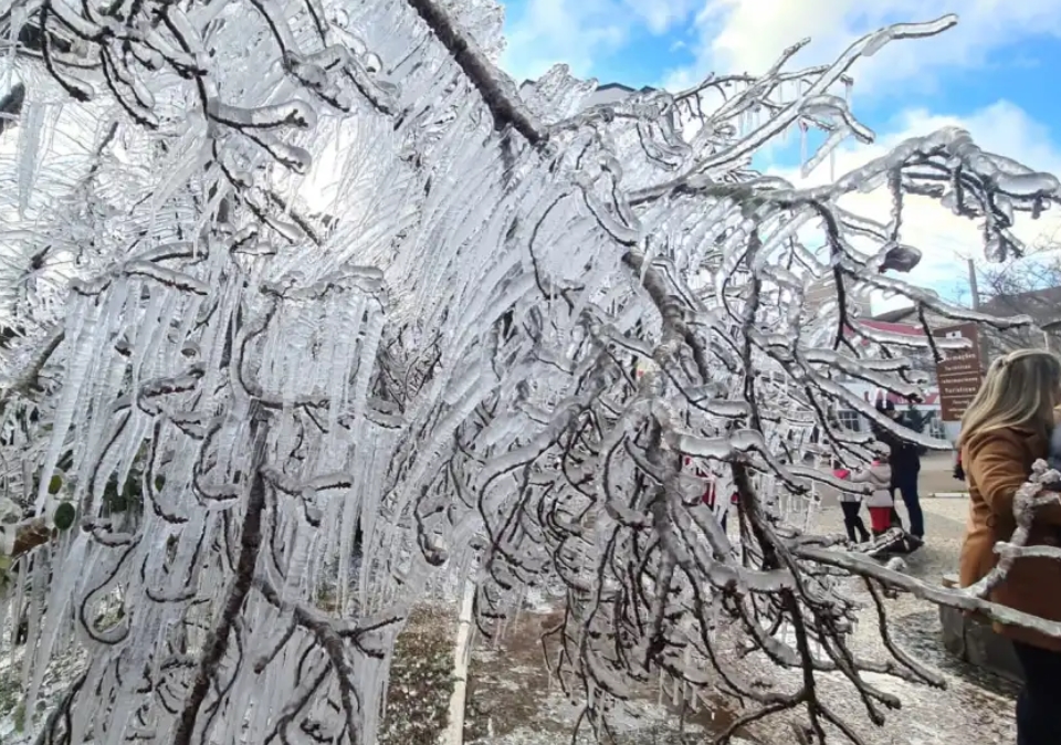 Vegetação congelada nesta manhã de quarta-feira em São Joaquim/SC